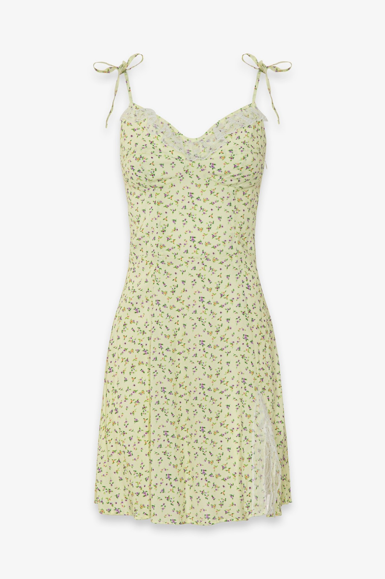 Alya - Short Crepe Dress with Lace Detail on the Neckline