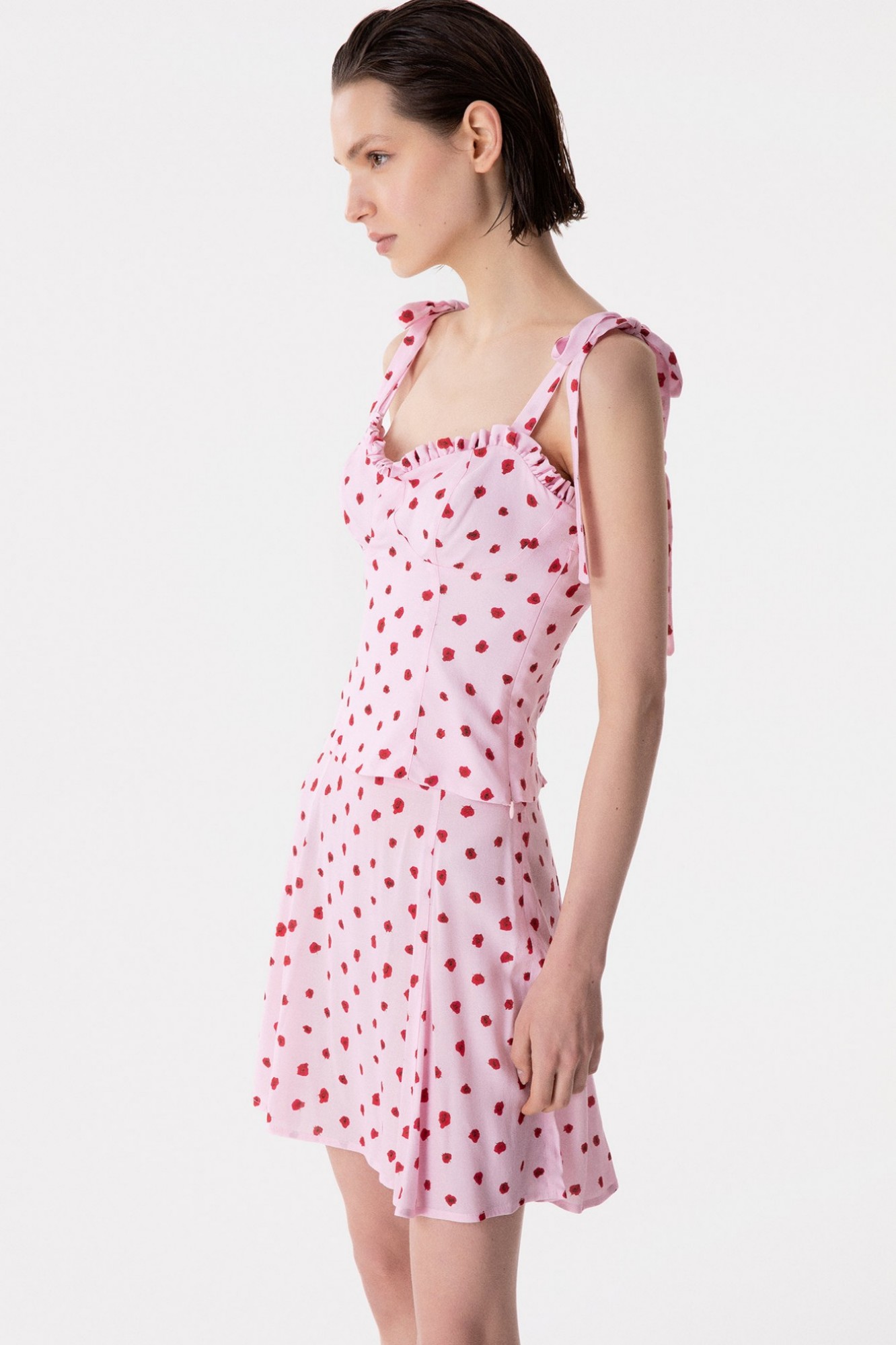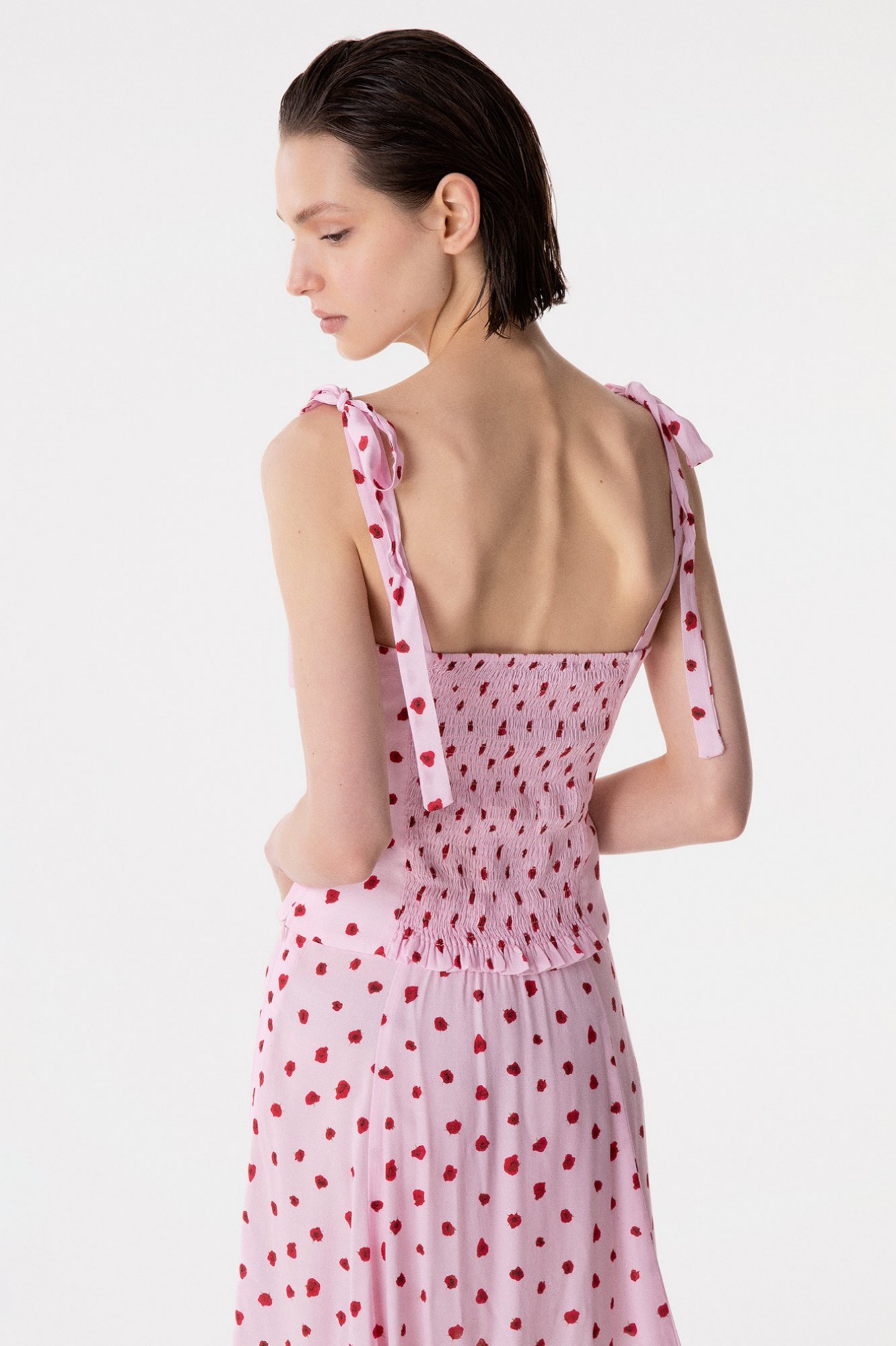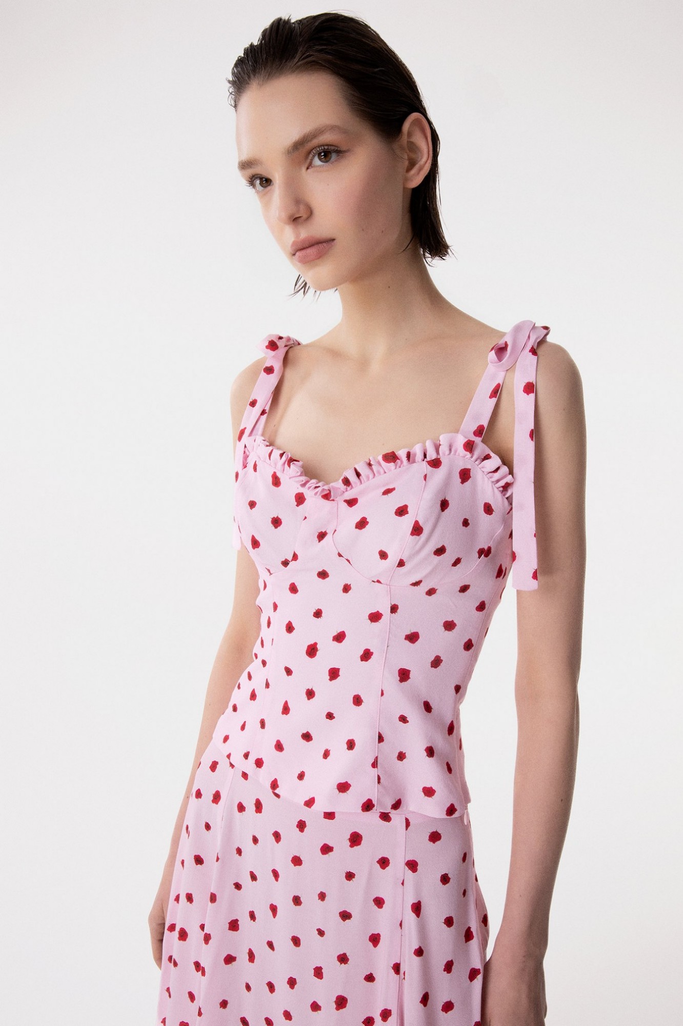 Deasy - Sweetheart Neckline Crepe Top with Rouge and Bow Straps