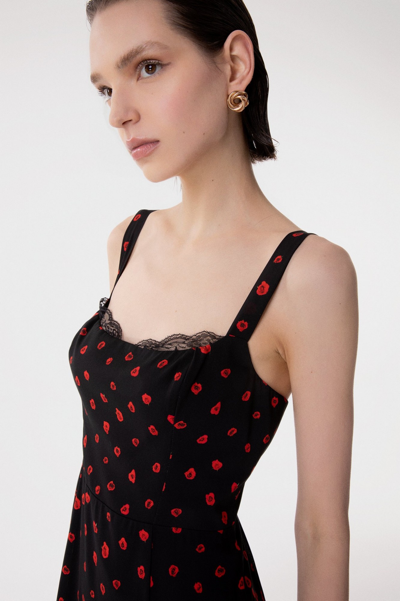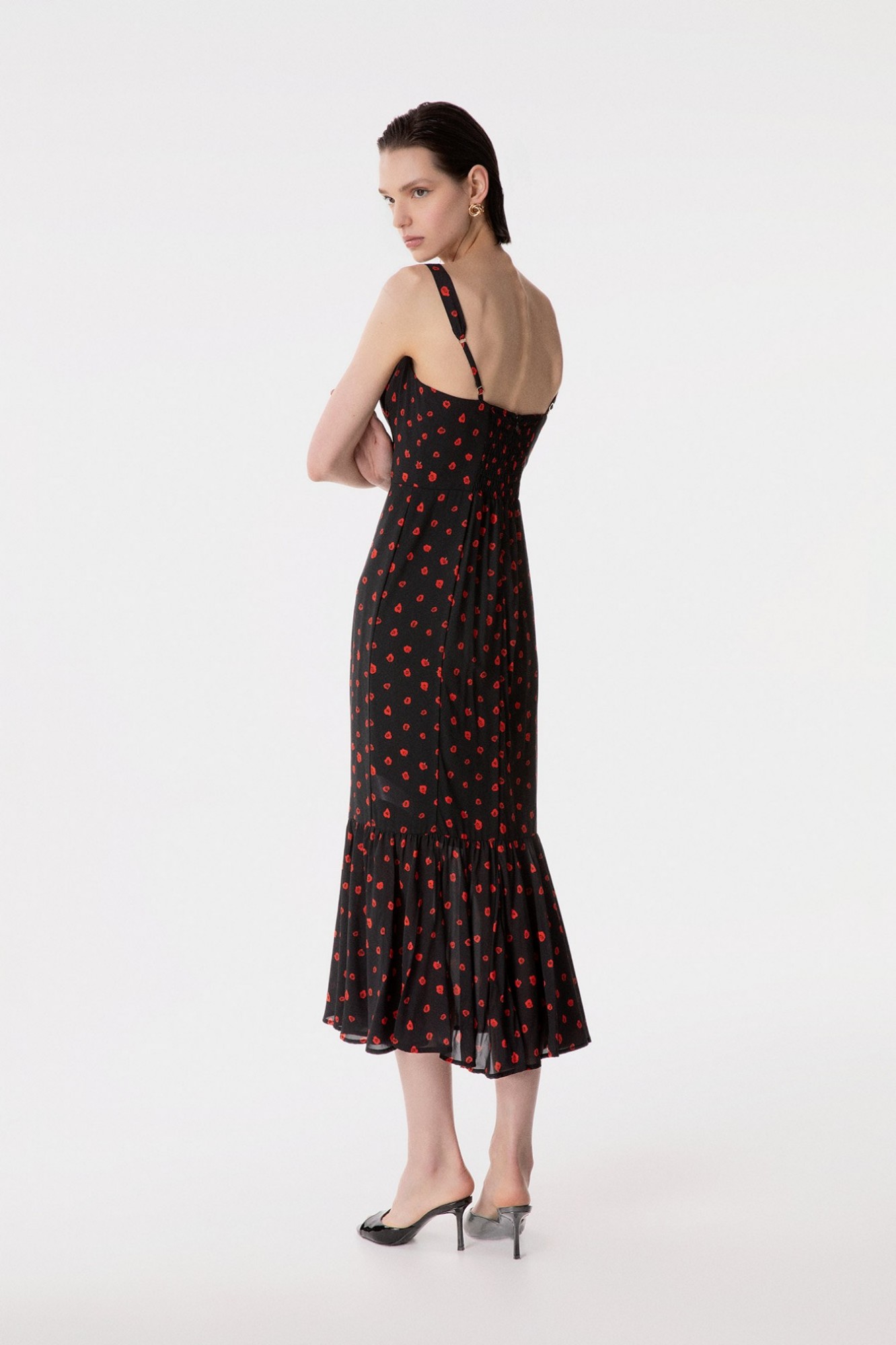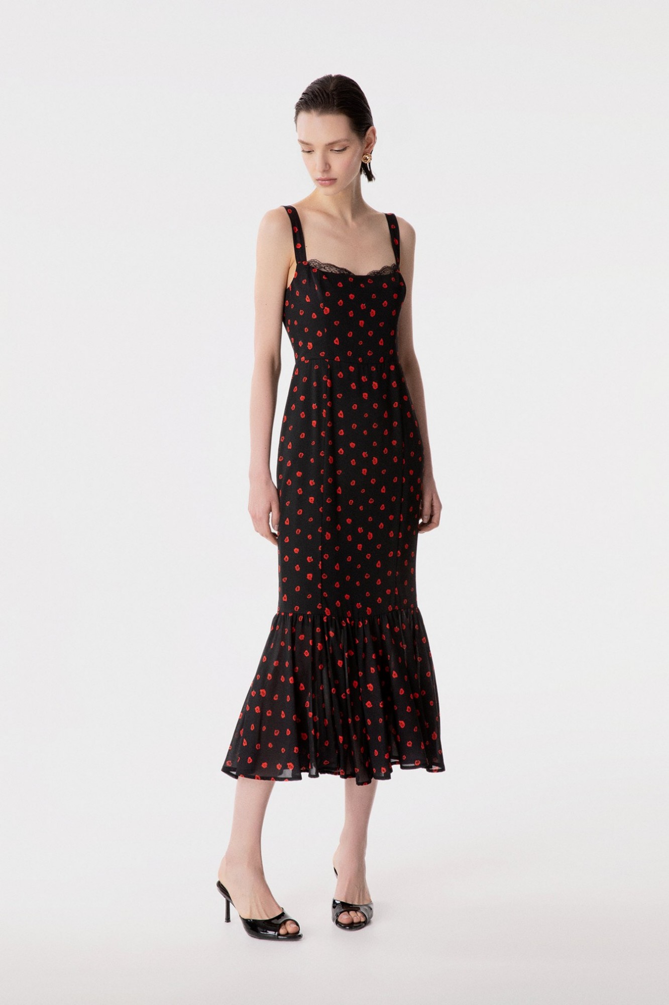 Denise - Long Georgette Dress with Wide Shoulder Straps, Sweetheart Neckline and Ruffled Hem