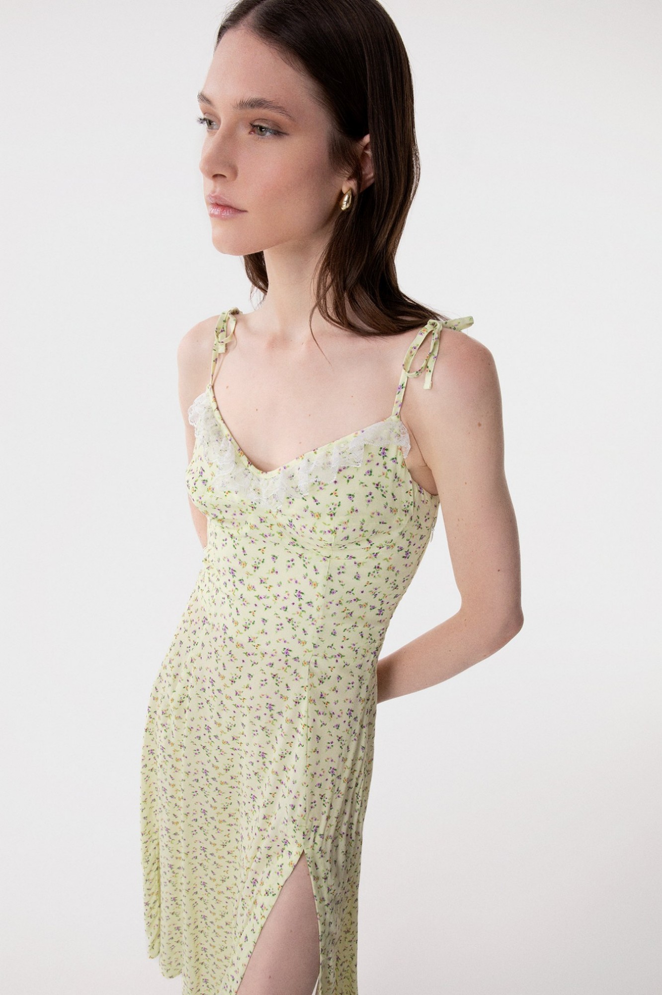 Priscilla - Crepe Midi Dress with Rouge Neckline and Side Slit