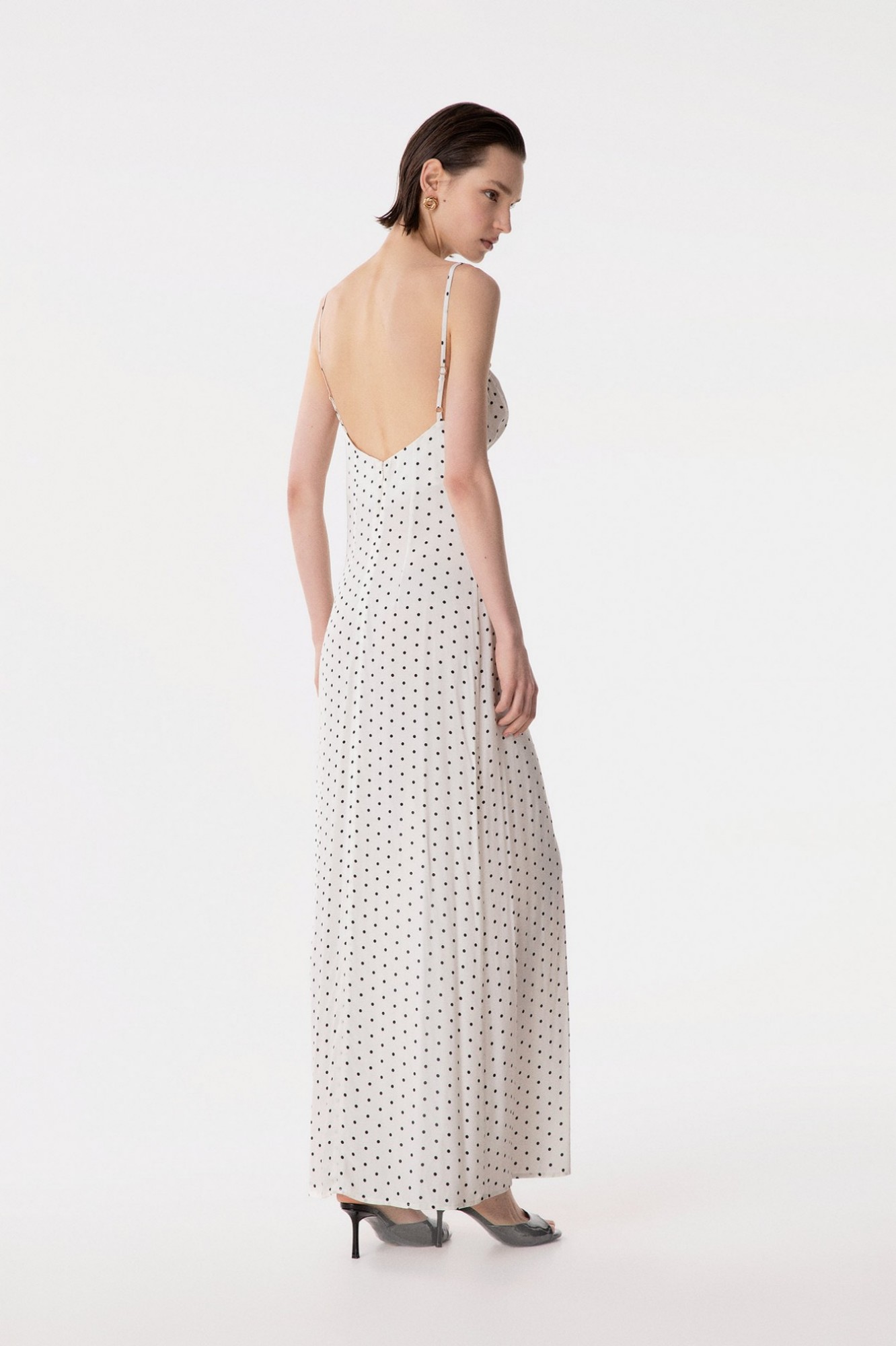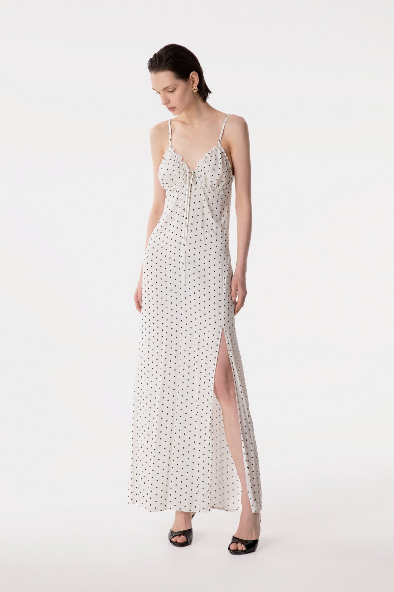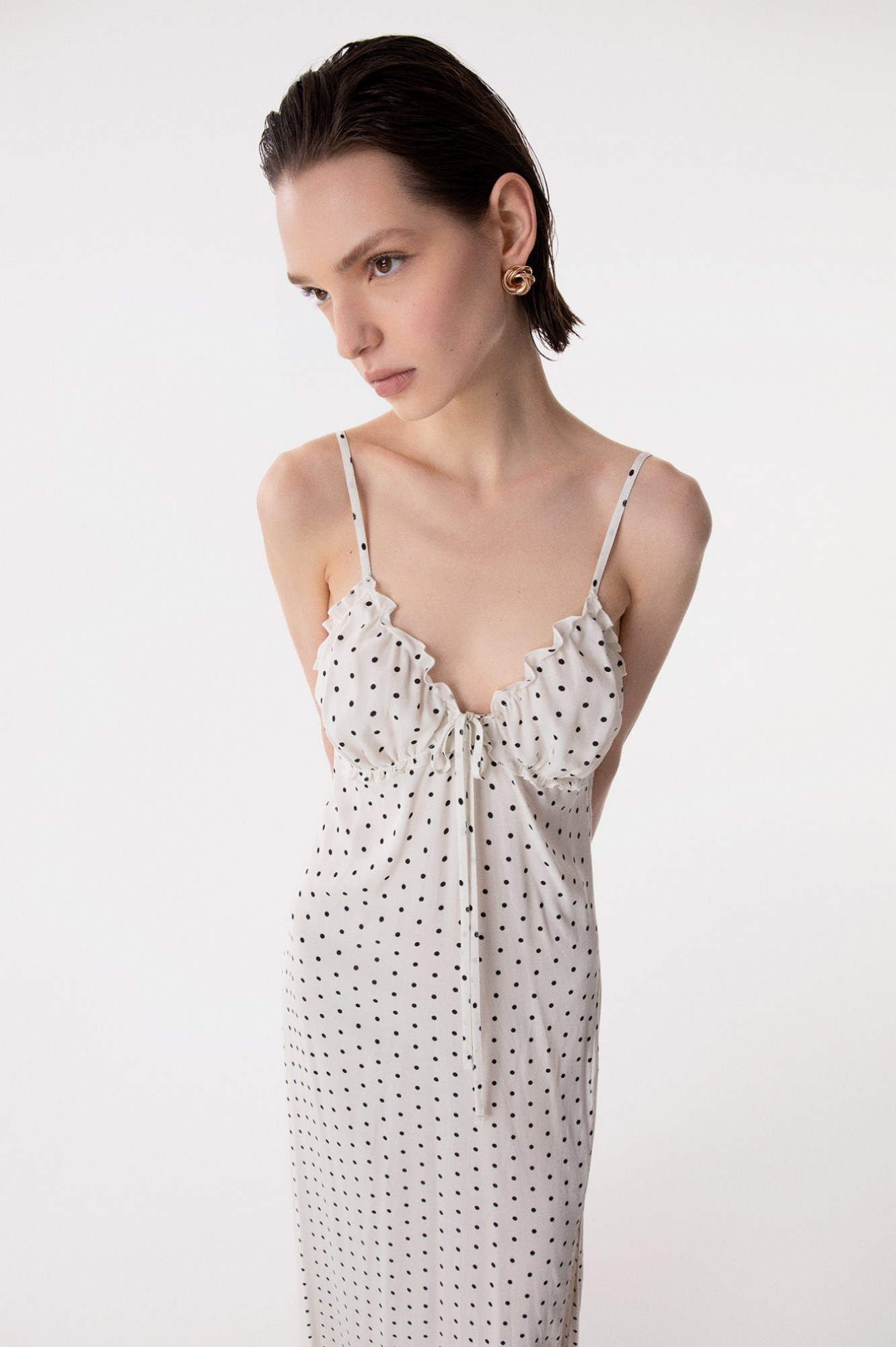 Riley - Long Straight Crepe Dress with Ruffles on the Bust