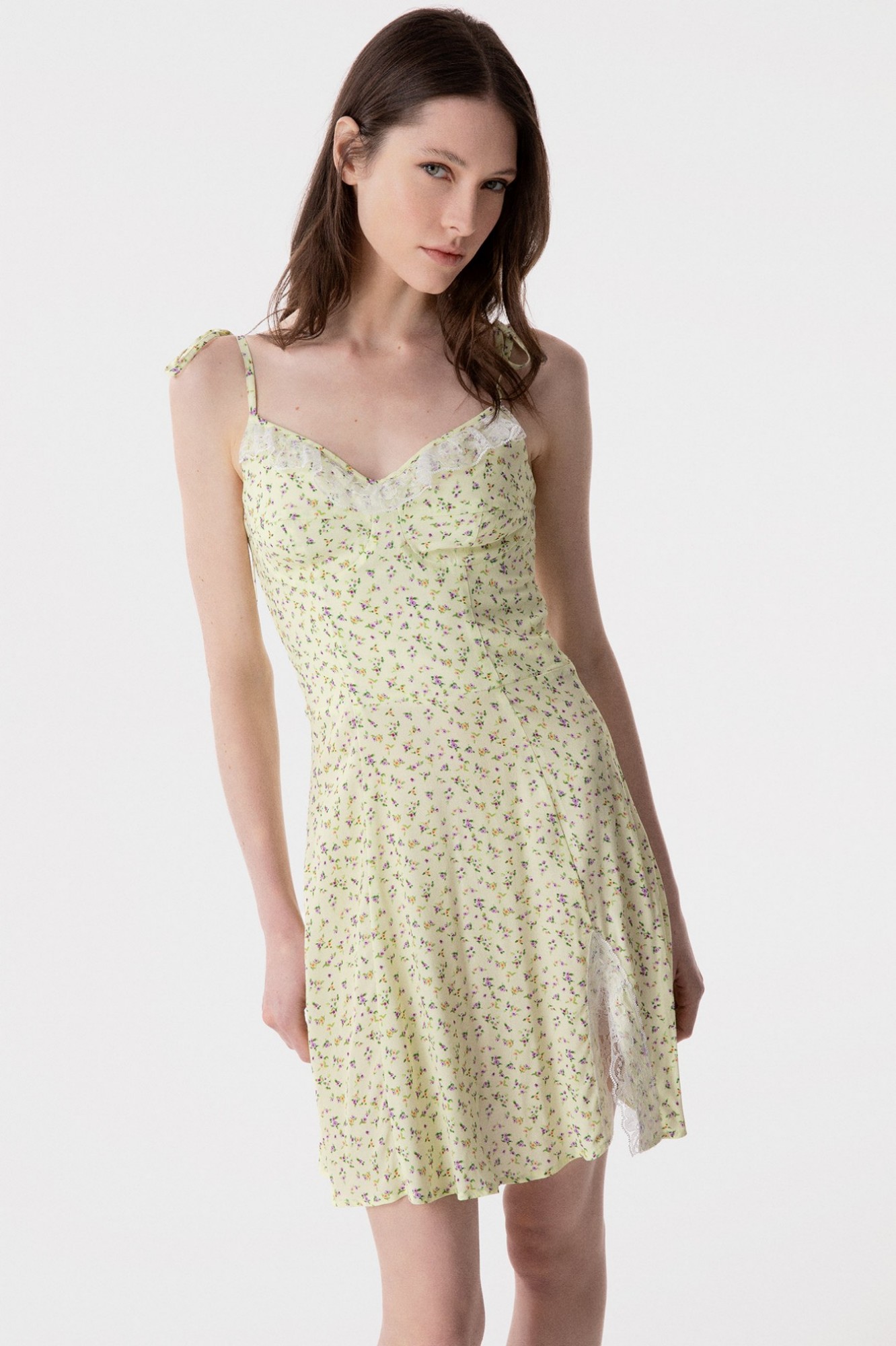 Alya - Abito Corto In Crepe Con Dettaglio Pizzo Sulla Scollatura