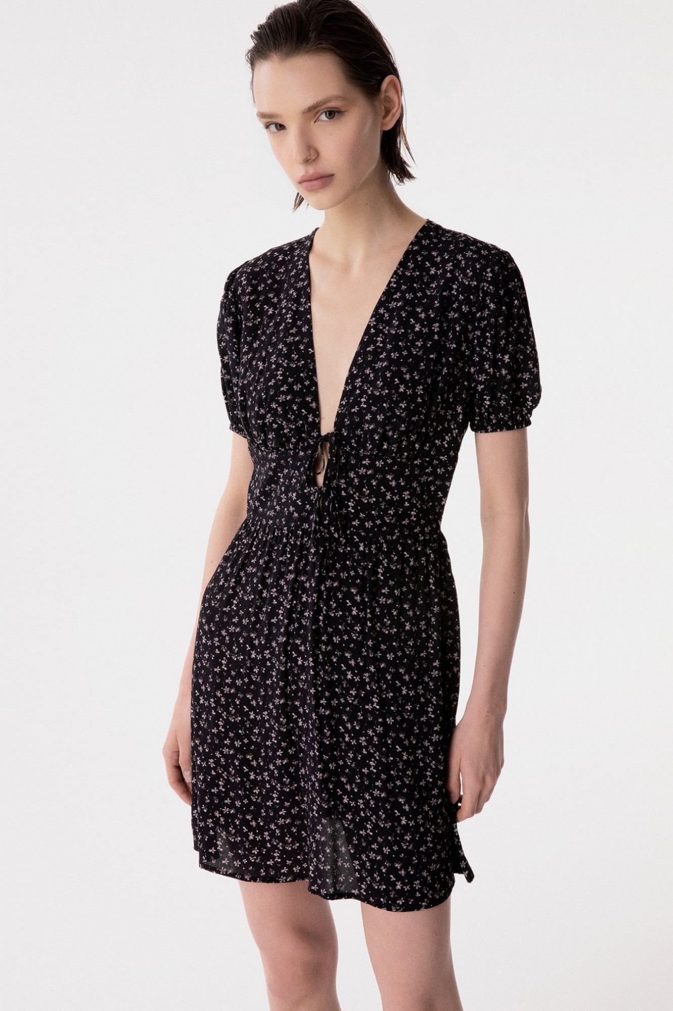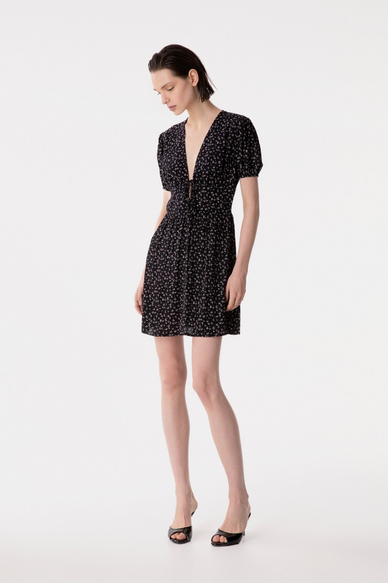 Atena - Abito Corto In Crepe Con Scollo A V E Laccetti Frontali