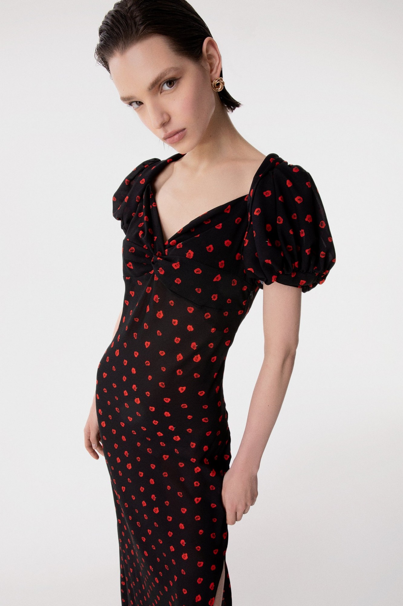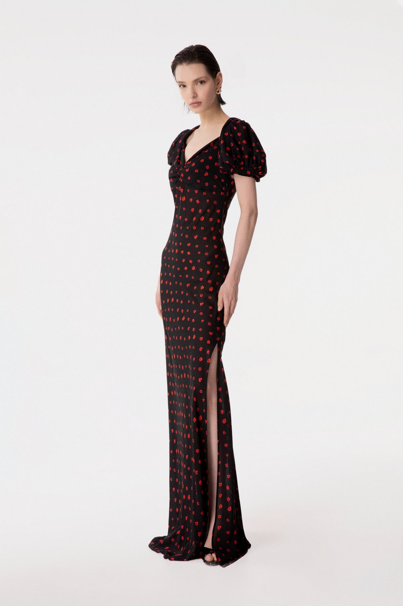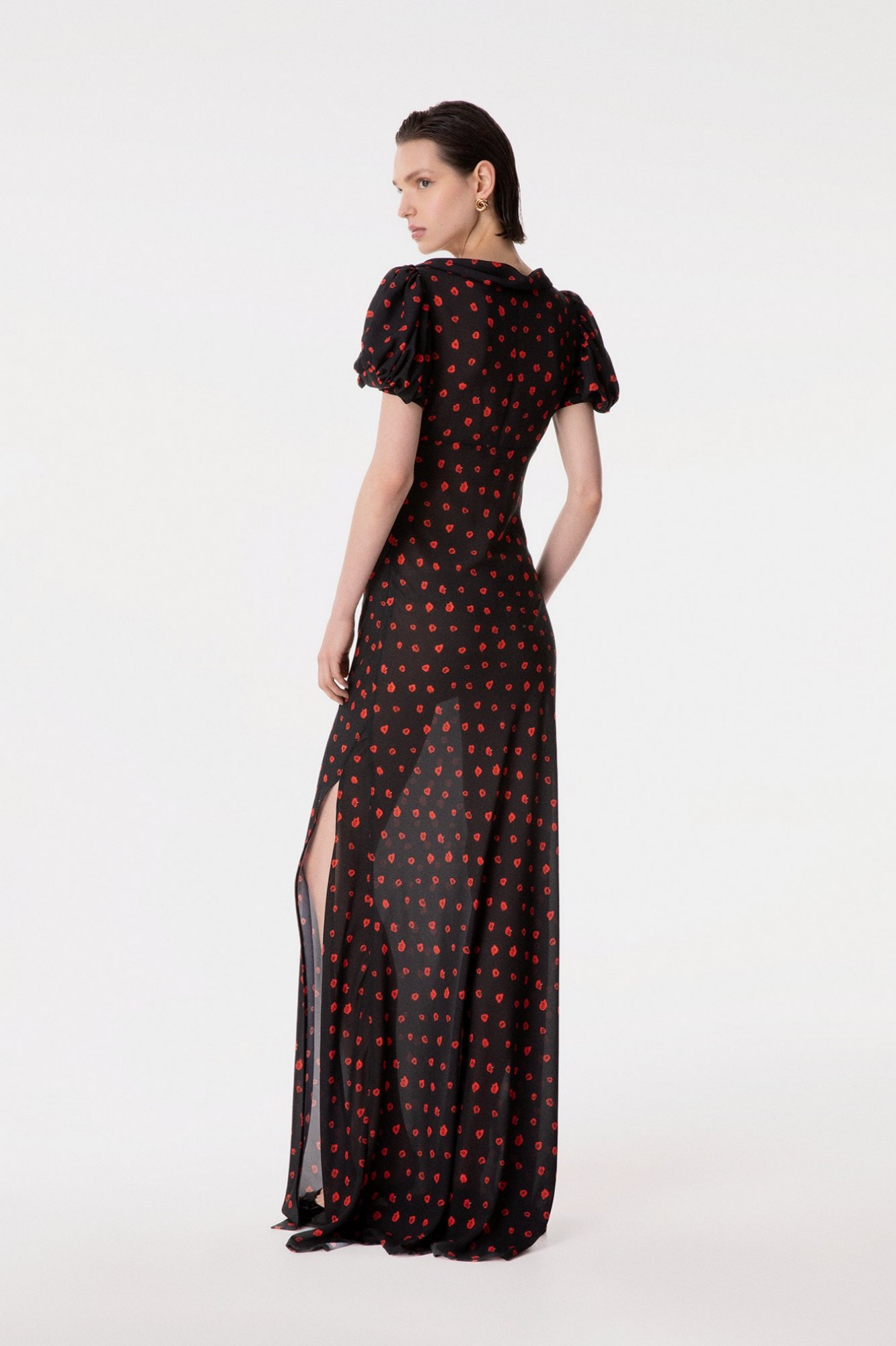 Benedetta - Abito Lungo Manica Corta A Palloncino In Georgette Con Spacco Laterale