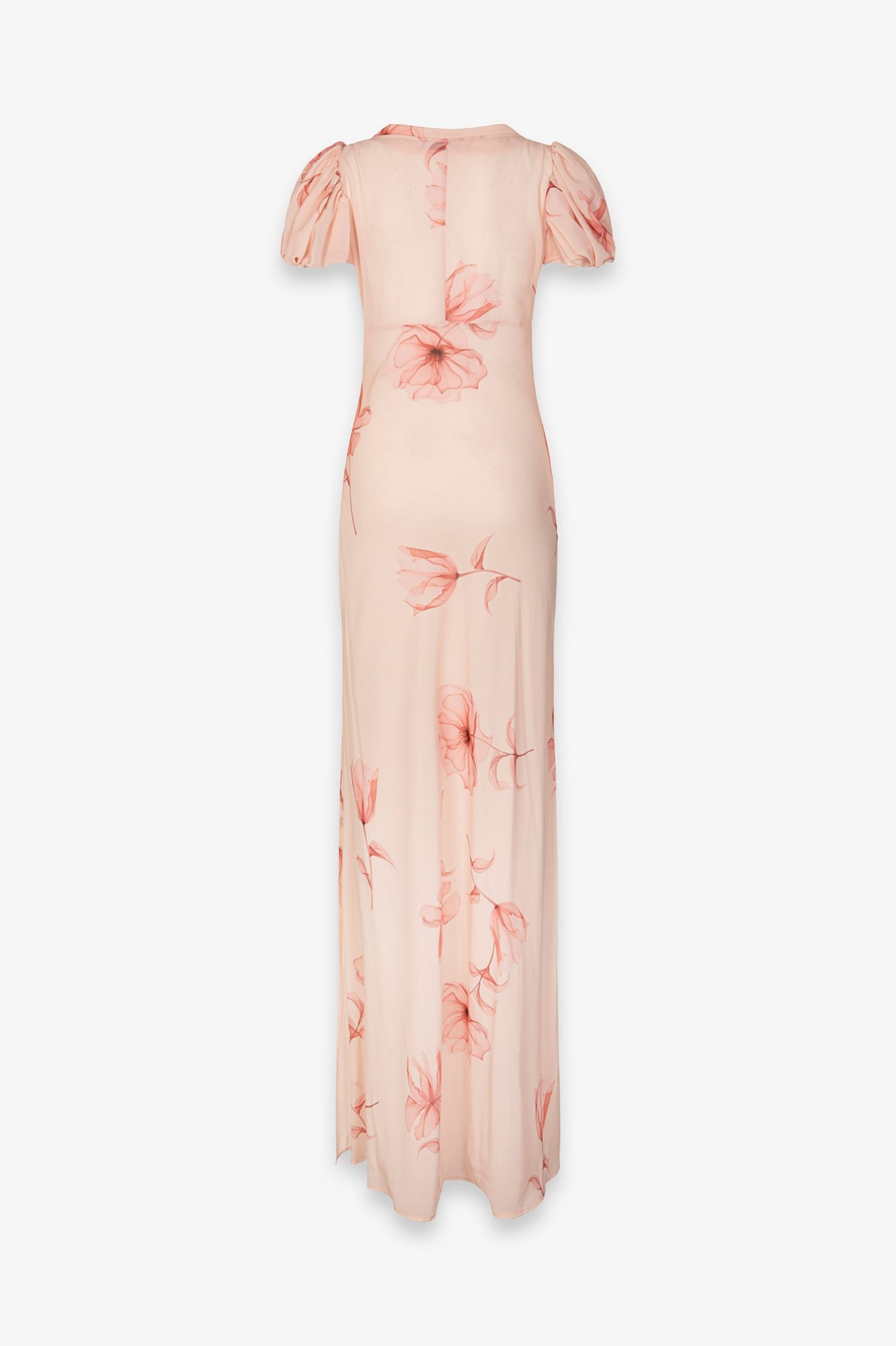 Benedetta - Abito Lungo Manica Corta A Palloncino In Georgette Con Spacco Laterale