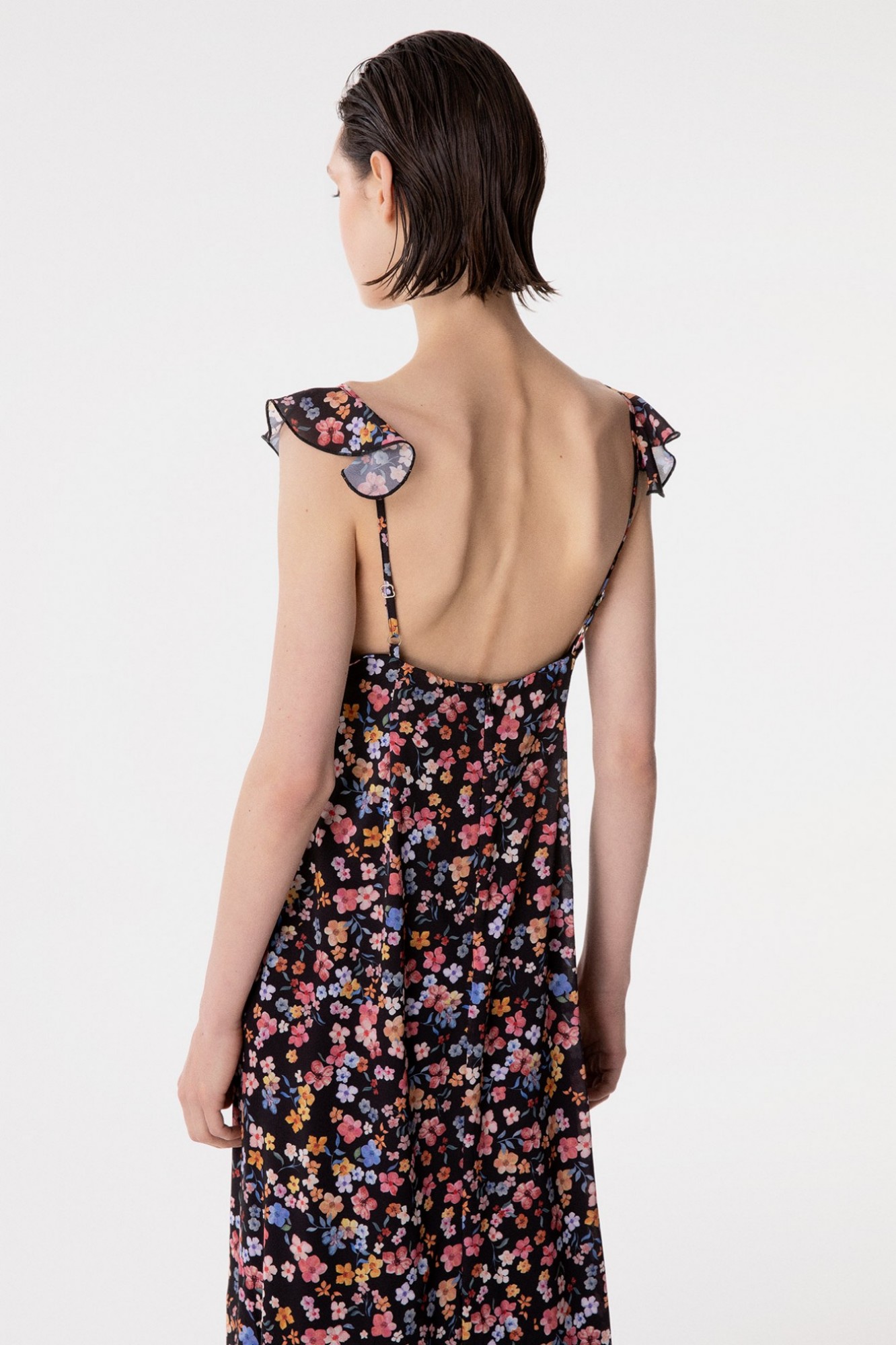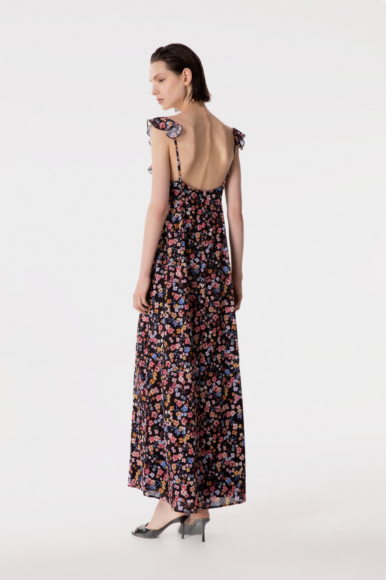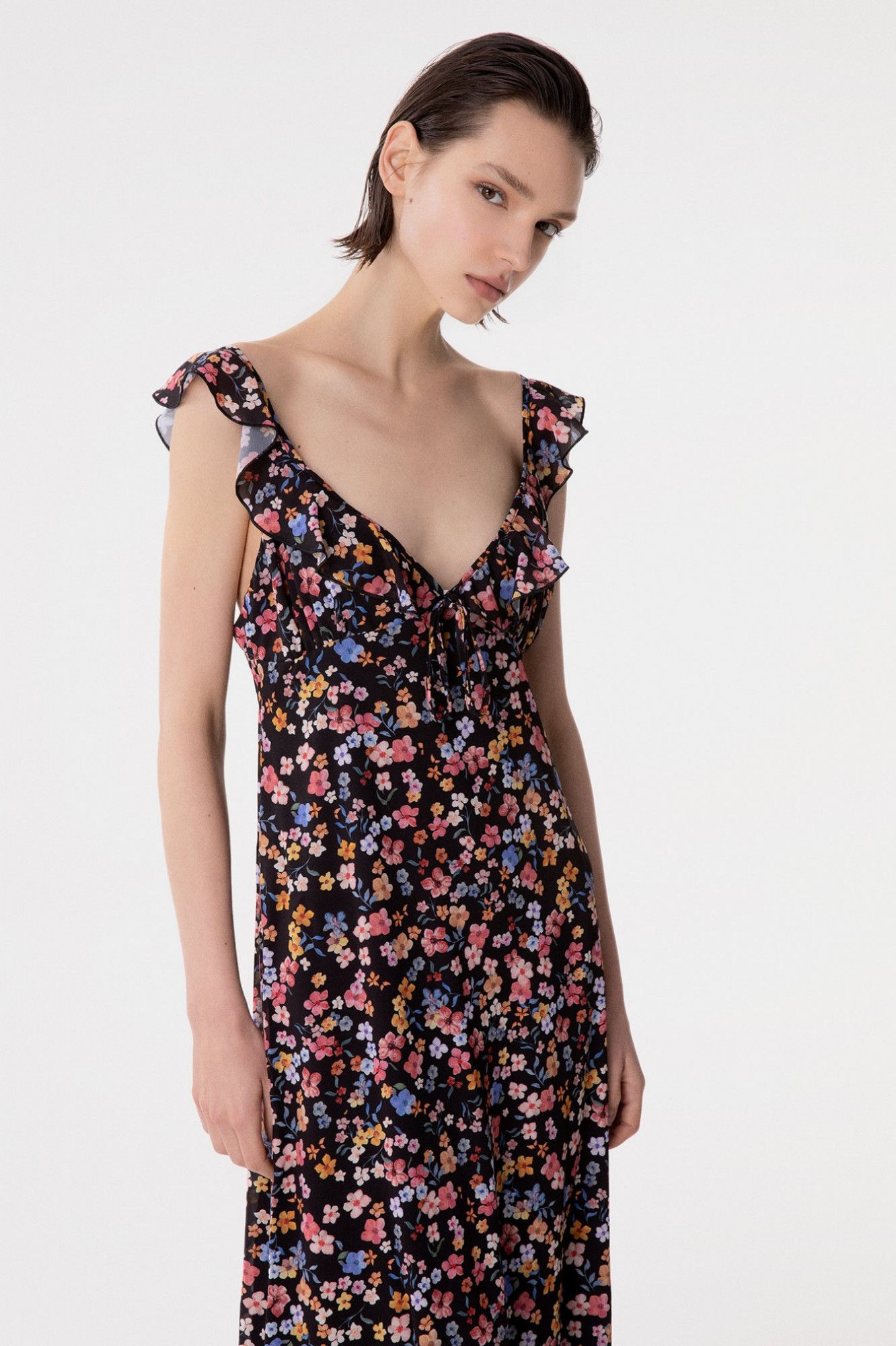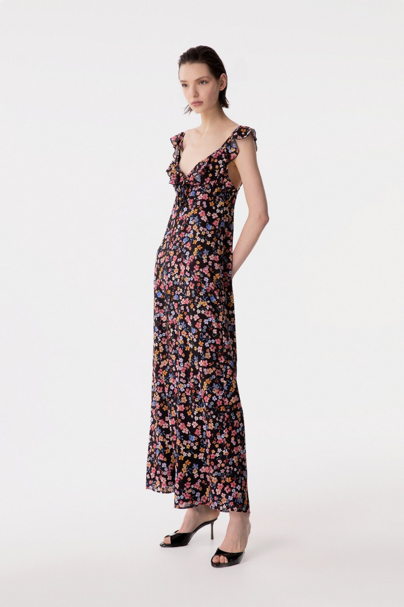 Cecilia - Abito Lungo In Georgette Con Volant Sulla Scollatura