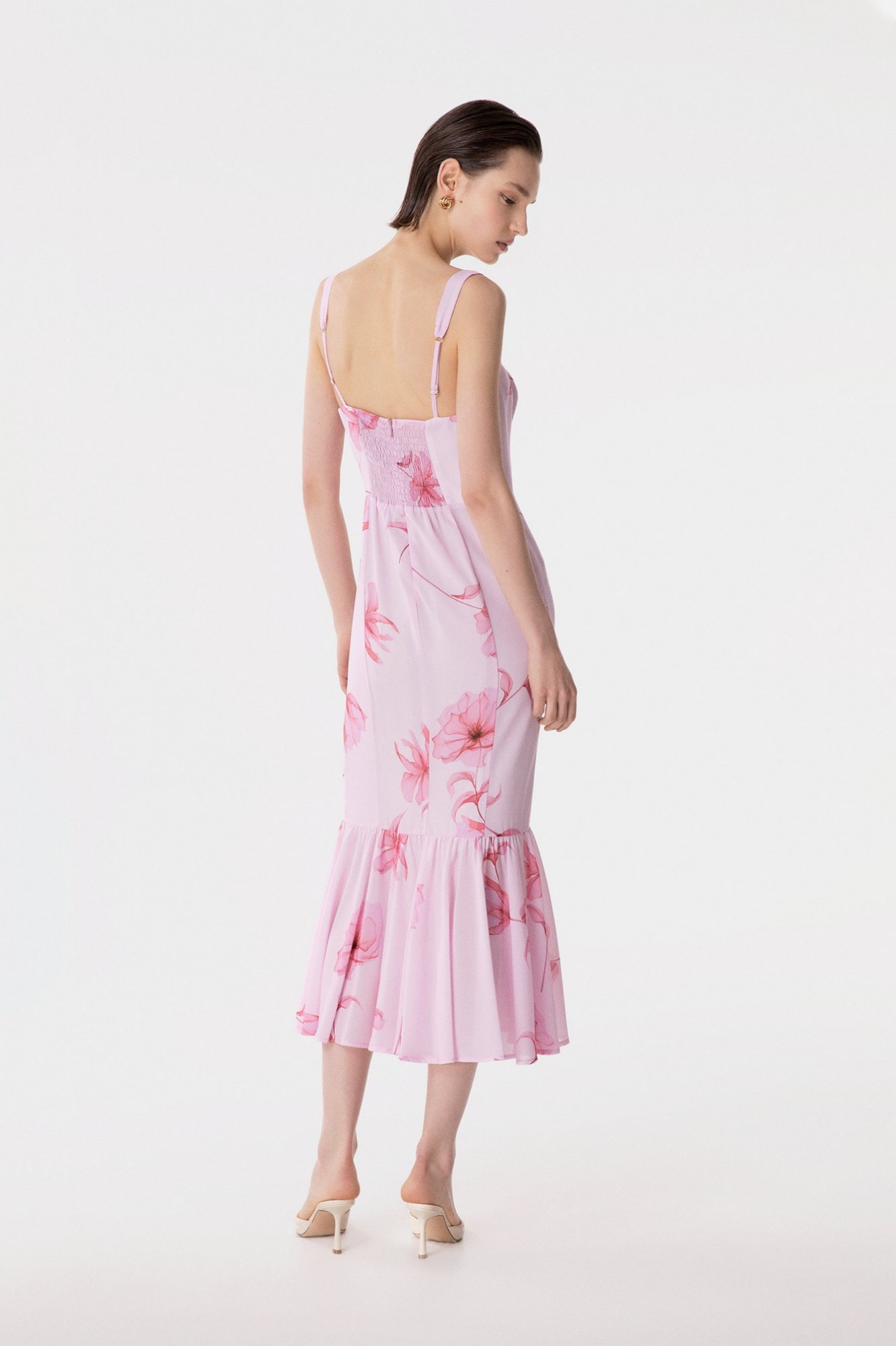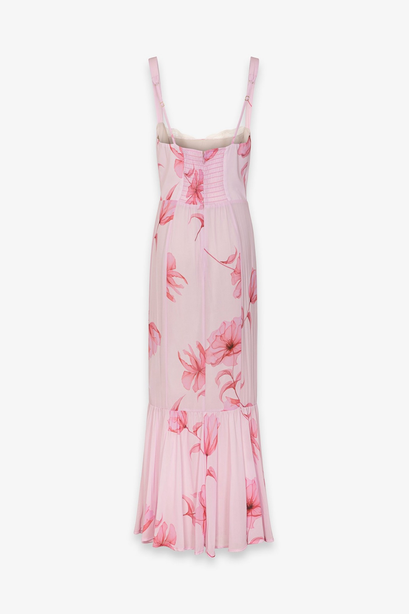 Denise - Abito Lungo In Georgette Con Spallina Larga, Scollo A Cuore E Fondo Balza Arricciata