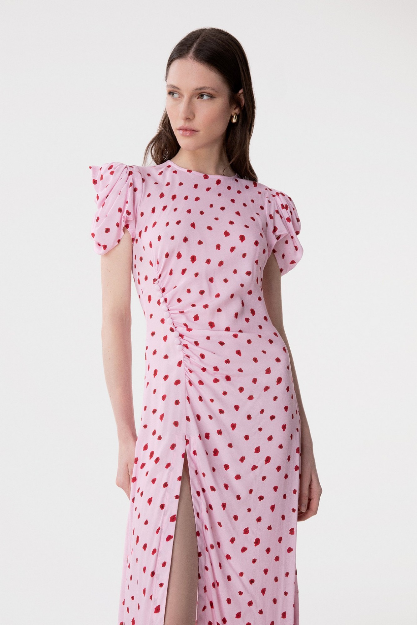Kristel - Abito Midi Con Drappeggio E Bottoncini In Crepe Con Spacco Laterale