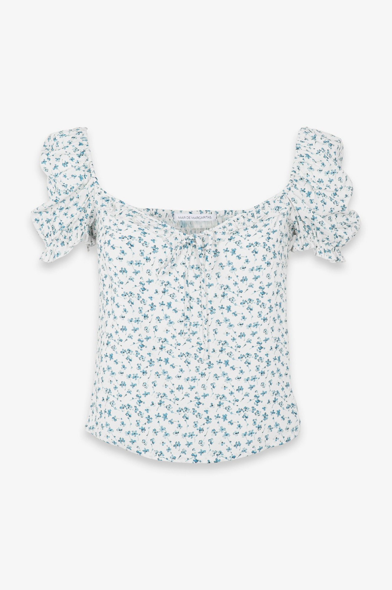Letizia - Top In Crepe Mezza Manica Con Volant Sul Seno E Fondo Maniche