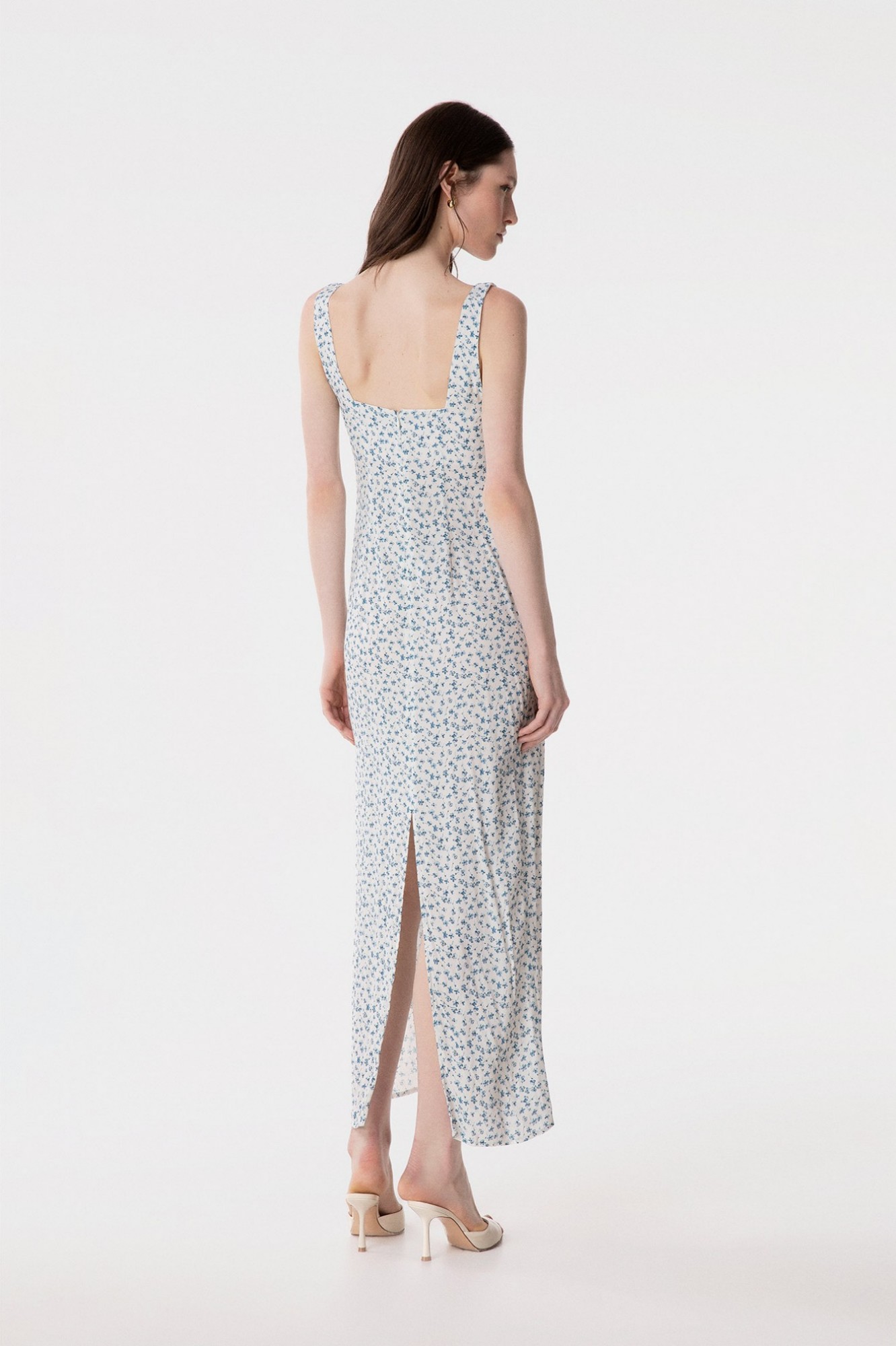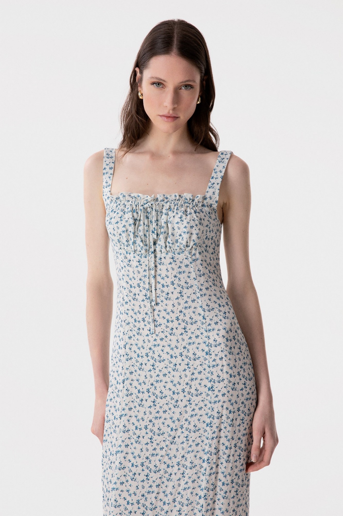 Megan - Abito Lungo Con Scollo Squadrato E Arricciature In Crepe