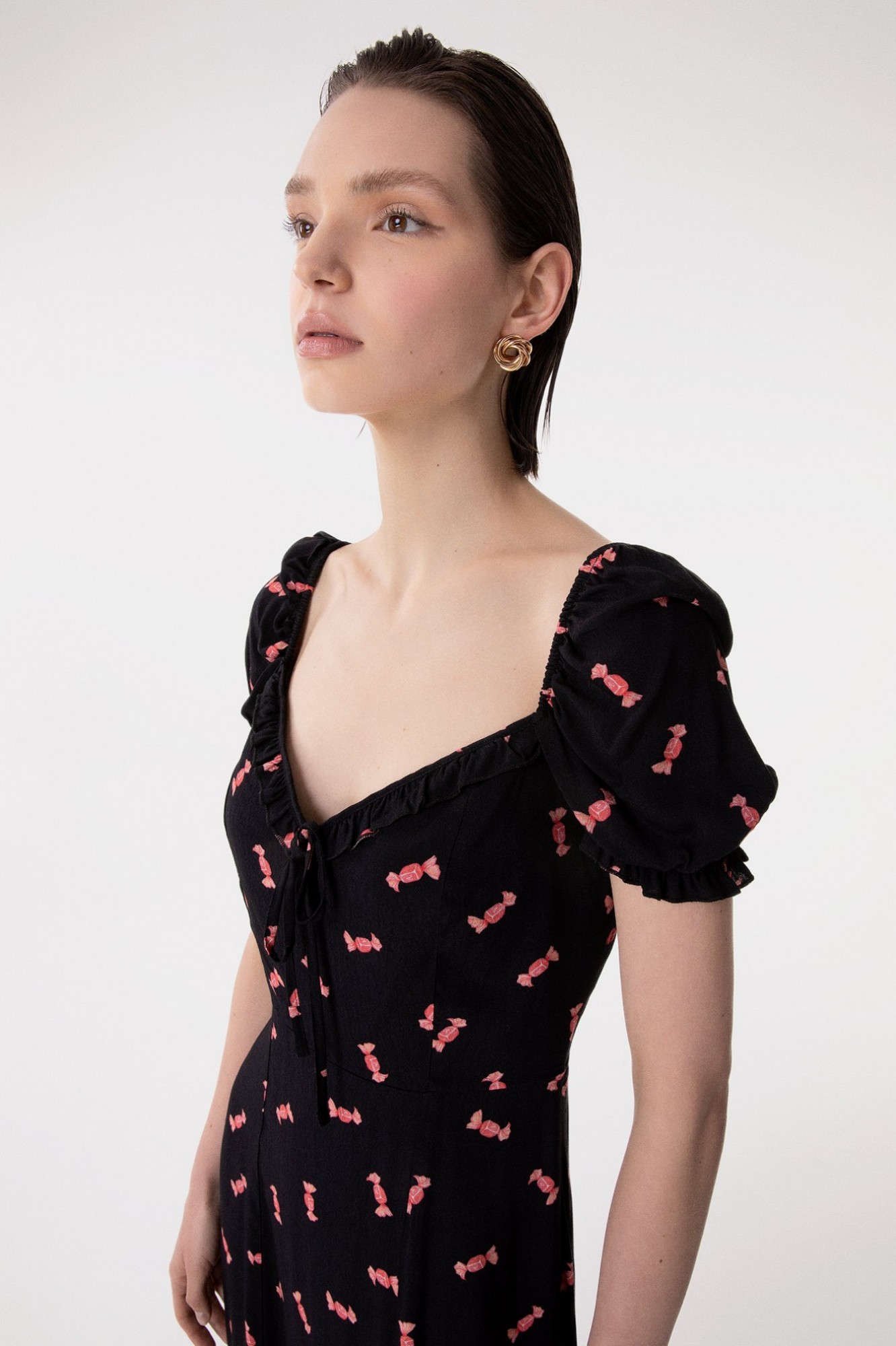 Nikita - Abito Midi A Mezza Manica Con Volant Sullo Scollo In Crepe