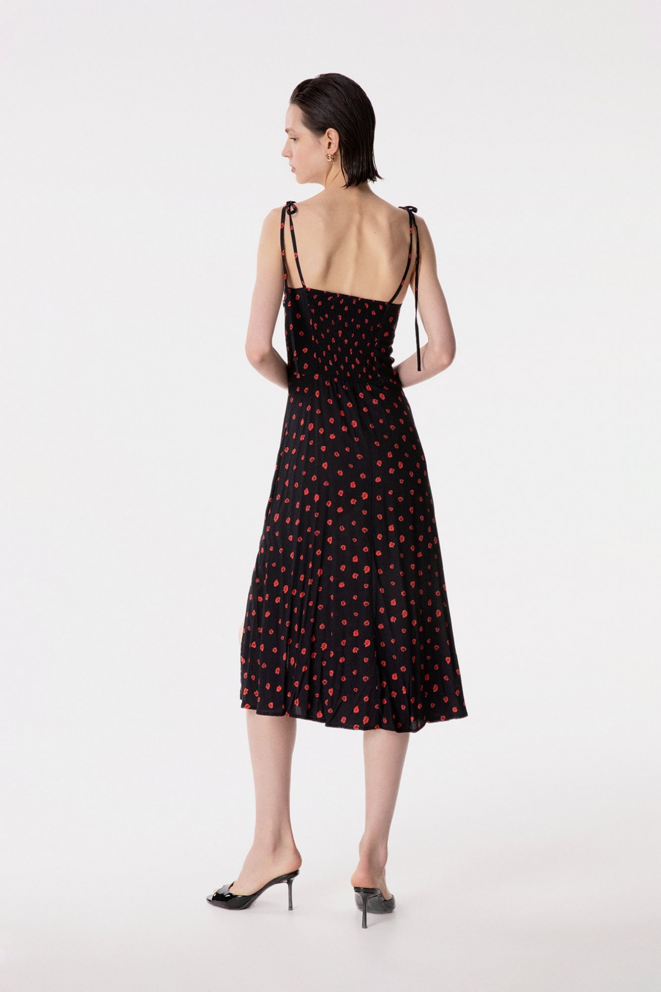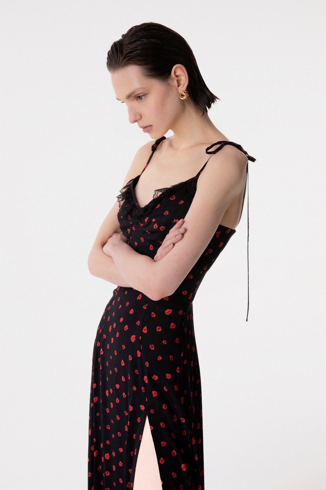 Priscilla - Abito Midi In Crepe Con Rouge Sulla Scollatura E Spacco Laterale