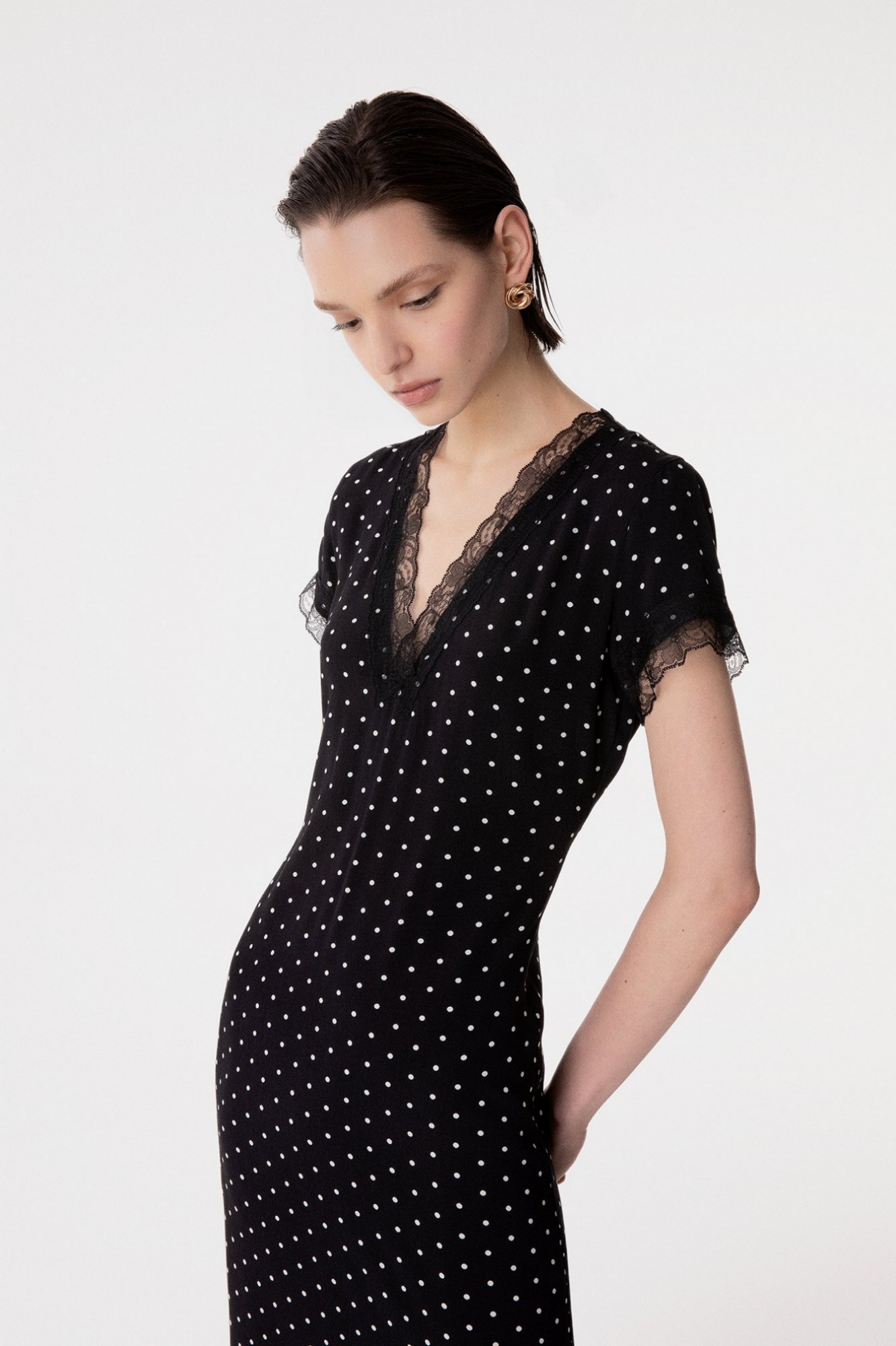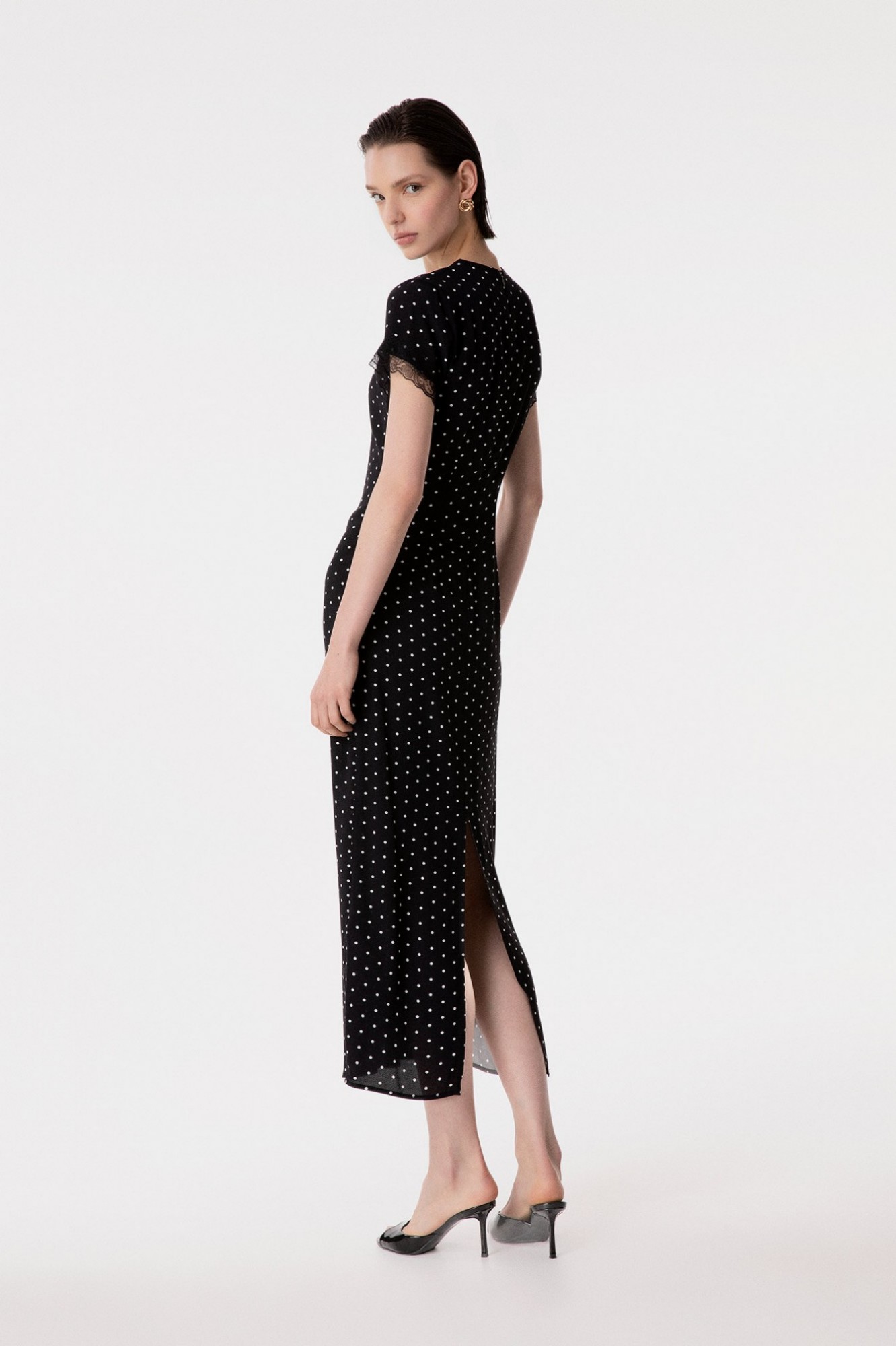 Raya - Abito Midi In Crepe Con Inserti In Pizzo
