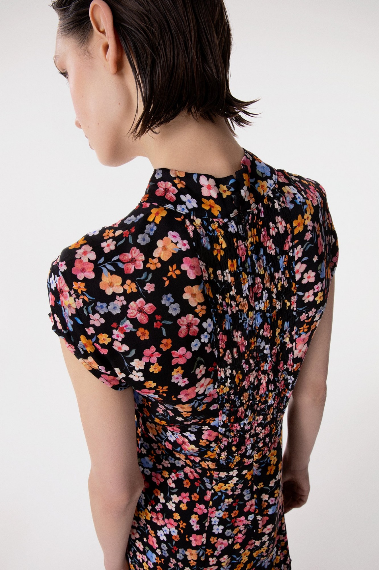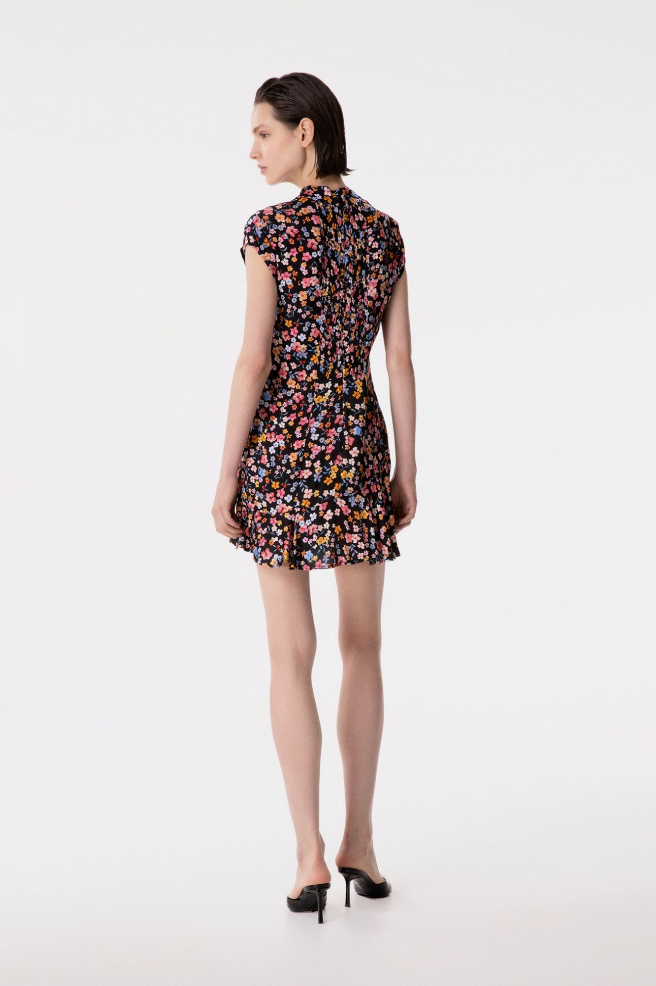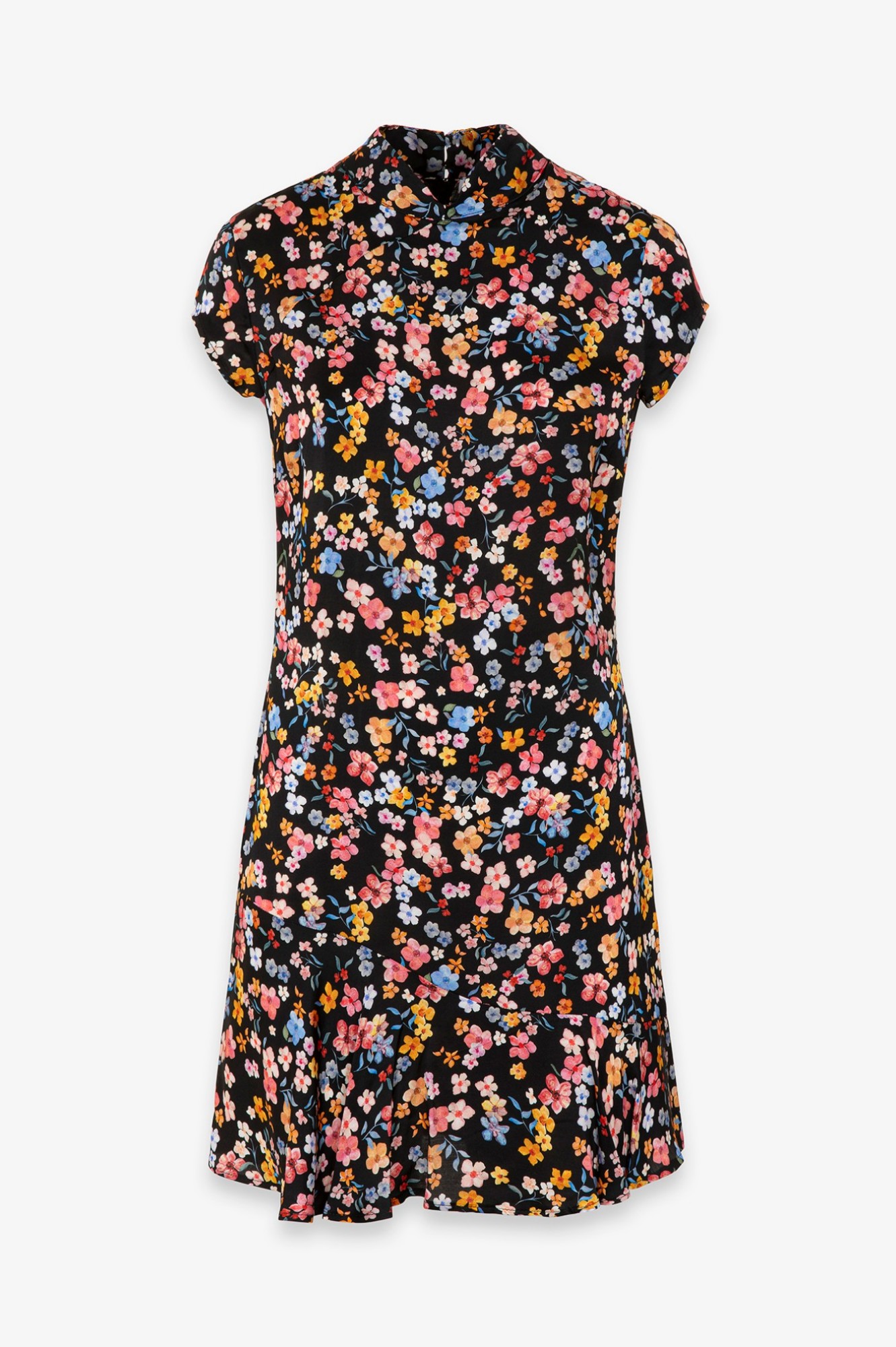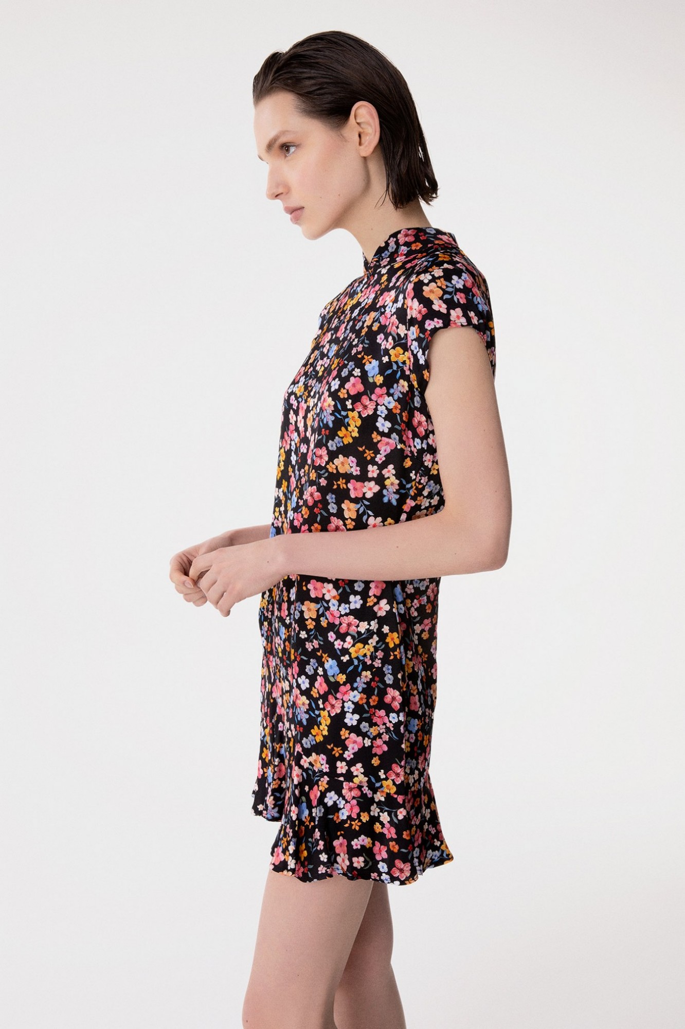 Swami - Abito Corto Mezza Manica, Collo Alla Coreana Con Volant Sul Fondo